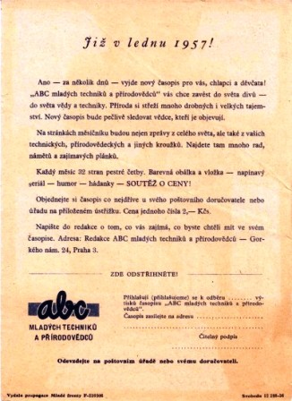Ábíčko se do důchodu nechystá. 60 let časopisu[ Autor: Vlastislav Toman | zařazeno: 20. 1. 2017 | přečteno 12537 ] Pokud patříte ke čtenářům-pamětníkům a časopis ABC pravidelně nesledujete, pak vám možná uniklo, že má v lednu významné jubileum! Ano, právě před šedesáti roky v lednu 1957 (podle tiráže 20. ledna – pozn. red.) vyšlo první číslo nového časopisu ABC mladých techniků a přírodovědců. Žádná velká reklama nebo propagace se tenkrát nekonala. Jen pár letáčků a oznámení na školy. Sotvakdo si dovedl představit, jak bude takový časopis vypadat. Komu bude určen, napovídal už sám předlouhý název. Klukům a děvčatům, které zajímá příroda a technika nebo i věda. Že z toho nakonec zůstane jen to ABC, nebo kamarádské Ábíčko či (moravské a slovenské) Ábécečko, bylo nasnadě. A tak se také stalo. Už první číslo ABC zmizelo z prodejen tisku během pár dnů, v Praze dokonce za několik hodin! Start nového měsíčníku se tedy povedl, přesto se tehdy nedalo předpokládat, že se časopis dožije šedesátky a stane se druhým českým nejstarším časopisem pro děti. (Tím prvním je totiž Mateřídouška, jejíž první číslo vyšlo už v roce 1945 – pozn. autora) Ábíčko za ta léta prošlo mnoha změnami. Stručně připomenuto – nejprve zesílilo, když dostalo obálku s přílohami a vystřihovacími modely i pomůckami, pak zhublo, aby se mohlo stát čtrnáctideníkem. I ten však zakrátko nabral stránky a tak se zrodil nejsilnější časopis pro kluky a děvčata o 40 stranách. Navíc se do časopisu vkládaly nejrůznější přílohy, tzv. déčka, obtisky, nášivky, semena květin i jehličnanů, ba i tužky, klíče na tuby a dokonce měkké gramofonové desky. To byla sedmdesátá léta, snad nejbohatší na změny. Od padesáti tisícového nákladu, se kterým ábíčko startovalo v roce 1957, se náklad neustále zvyšoval a v osmdesátých letech dosáhl přes 300 000 výtisků. Časopis ABC však sehrál svoji roli i při změnách, ke kterým postupně docházelo v tehdejší Pionýrské organizaci ČSM. Od roku 1960 totiž organizoval pionýrské zájmové kluby – raketové posádky, hlídky přírody, dívčí kluby a další. Rozvíjela se tak pionýrská činnost v místě bydliště, i když i na školách a v jiných zařízeních. Až v sedmdesátých letech při vzniku Pionýrské organizace SSM byly kluby postupně omezovány, zato však některé poznatky z jejich organizování a činnosti byly včleněny do Výchovného systému PO SSM. Byly tu však i jiné aktivity, které časopis vytvořil nebo pomohl při jejich rozvoji. Ať už to byly závody minikár, turistické srazy čtenářů a klubů, návody a náměty pro zájmovou technickou a přírodovědnou činnost, podpora stanic mladých techniků a přírodovědců při průmyslových a zemědělských závodech, nebo – dodnes trvající a rozvíjející se – papírové modelářství! Na přelomu tisíciletí se poněkud pozměnil název časopisu na ABC, časopis generace 21. století. Jak každý vidí, to Ábíčko však zůstalo a přináší klukům a děvčatům, tak jako vždy, pohledy na nové trendy ve vědě, technice a přírodě. Má své webové i facebookové stránky, nabízí e-stránky s videozáznamy, aktualitami i archivem. Zůstaly však i tradiční papírové modely a komiksy, které k Ábíčku neoddělitelně patří už od jeho první čísla. Ano, vy, pamětníci, si zcela jistě povzdechnete: „Ale už to není časopis jako kdysi!“ Máte pravdu, vždyť ani ta dnešní doba není jako (kdysi) ta naše! Přesto – na zdraví jubilantovi! Vlastislav Toman, pamětník, (spoluzakladatel a šéfredaktor ABC v letech 1959-92)