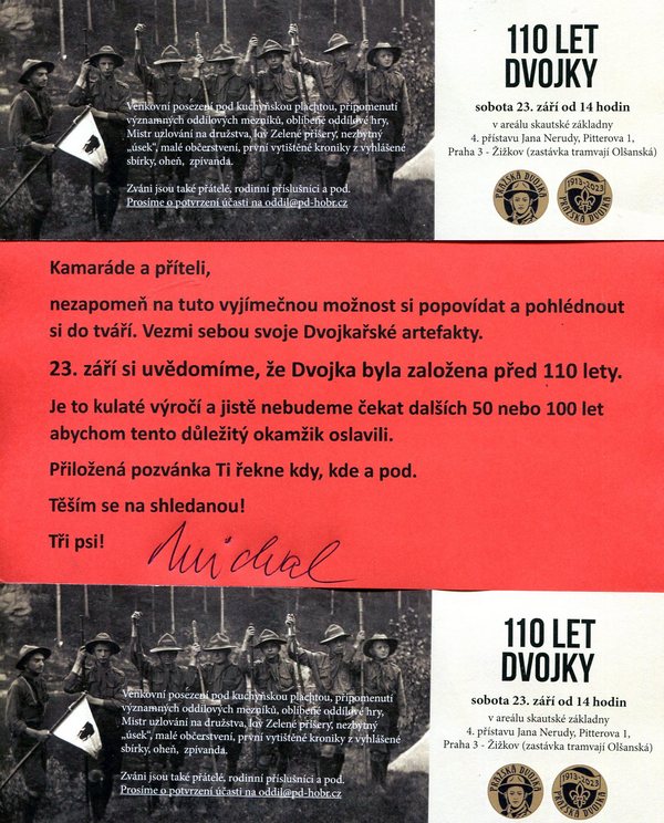 V uplynulých dnech uplynulo 110 let od okamžiků kdy byl založen skautský oddíl Pražská Dvojka. Nebudu Vás unavovat s historickými daty, ale budu se koncentrovat na to, co se k tomuto datu ten den na Žižkově dělo.