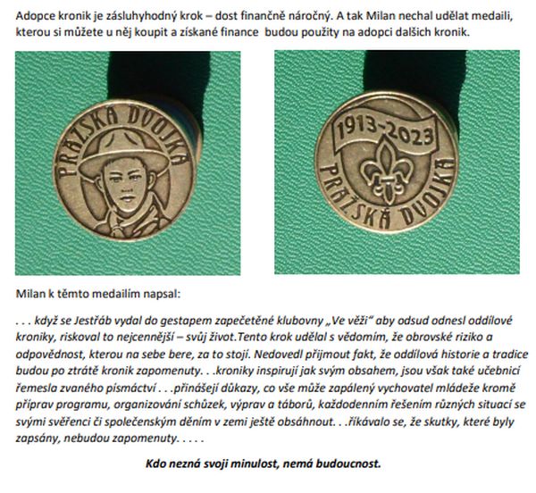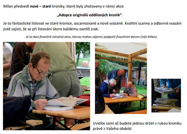 Milan pronajal „Areál pro děti“ pod Parukářkou na Žižkově, kde jsou doma některá skautská střediska – Vodní skauti, Junáci Vítkov a další. Sídlí zde dokonce Okresní rada Junáka Prahy 3. Návštěvníky přivítaly kopie fotek z dávných dob a byl připraven – pro všechny – zajímavý program.