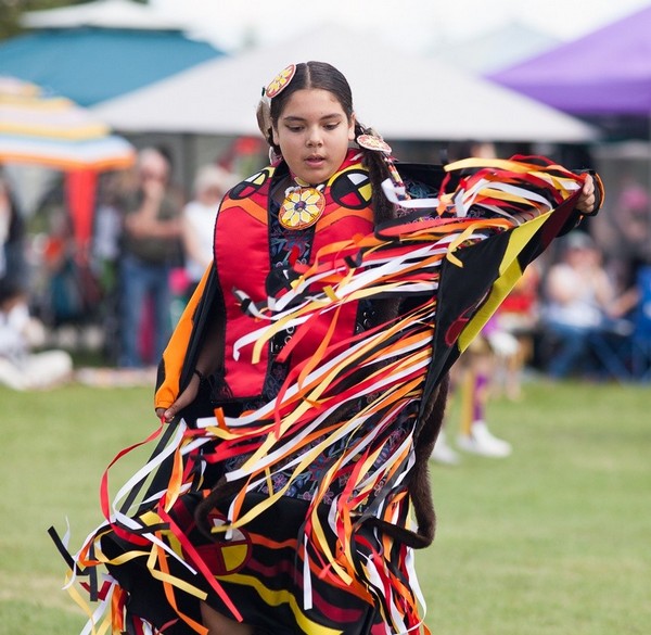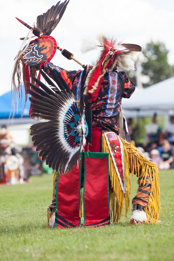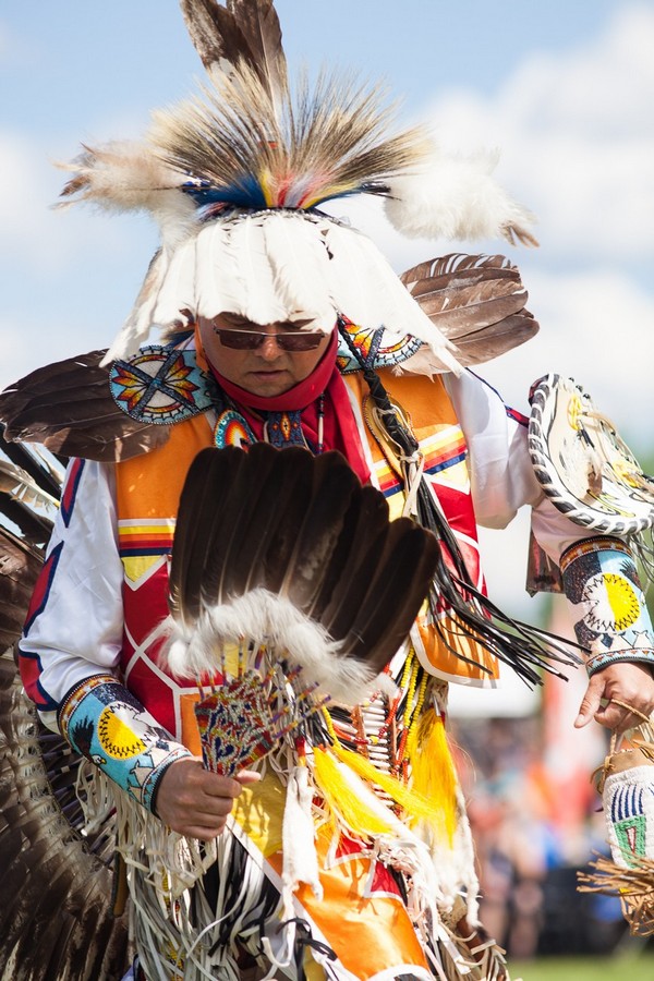 < br>Některé tance jsou rázu spirituálního – duchovního. V neposlední řadě tito původní obyvatelé amerického světadílu při Pow - Wow soutěží mezi sebou v barevnosti a kráse svých krojů. Mladí případně projdou aktem zralosti. Také zvládnutí jednotlivých tanců tanečnicemi a tanečníky bývá hodnoceno. Foto: Barbara Beranek