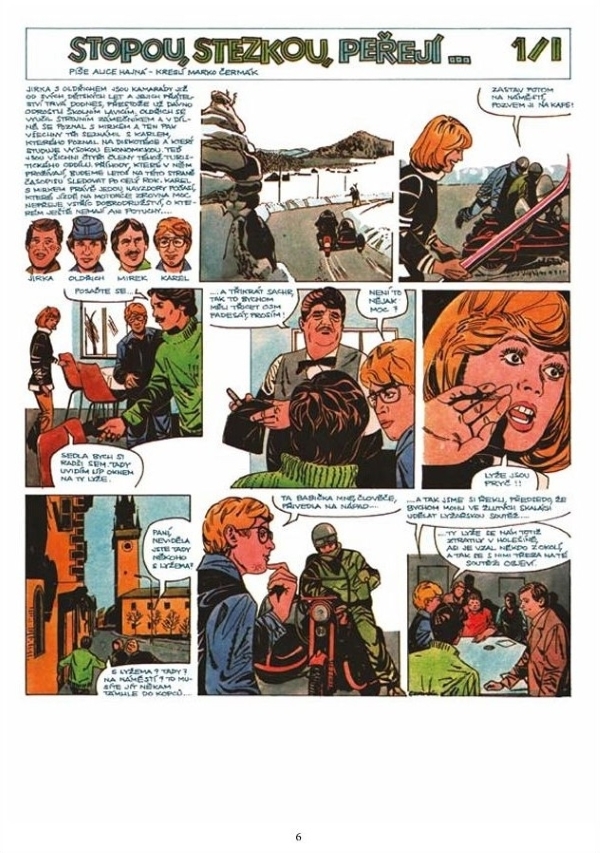 Když se začátkem ledna 1980 v týdeníku Ahoj na sobotu objevili na poslední straně v novém kresleném seriálu Stopou, stezkou, peřejí… podle scénáře Alice Hajné kamarádi Jirka, Oldřich, Mirek a Karel, nebylo to pro čtenáře časopisu vydávaného Československou stranou socialistickou ve vydavatelství Melantrich s těmito dospělými členy turistického oddílu setkání první.